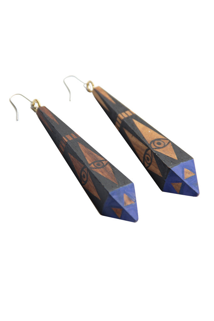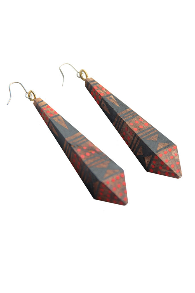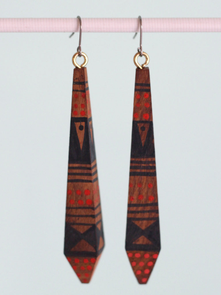 The Drop Earrings are made from sustainably grown Rosewood. The geometric shaped earrings are hand painted with unique designs. They have surgical steel earring hooks- making them a great gift for anyone sensitive to nickel. Comes in a neat blue gift box.