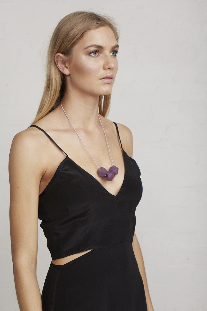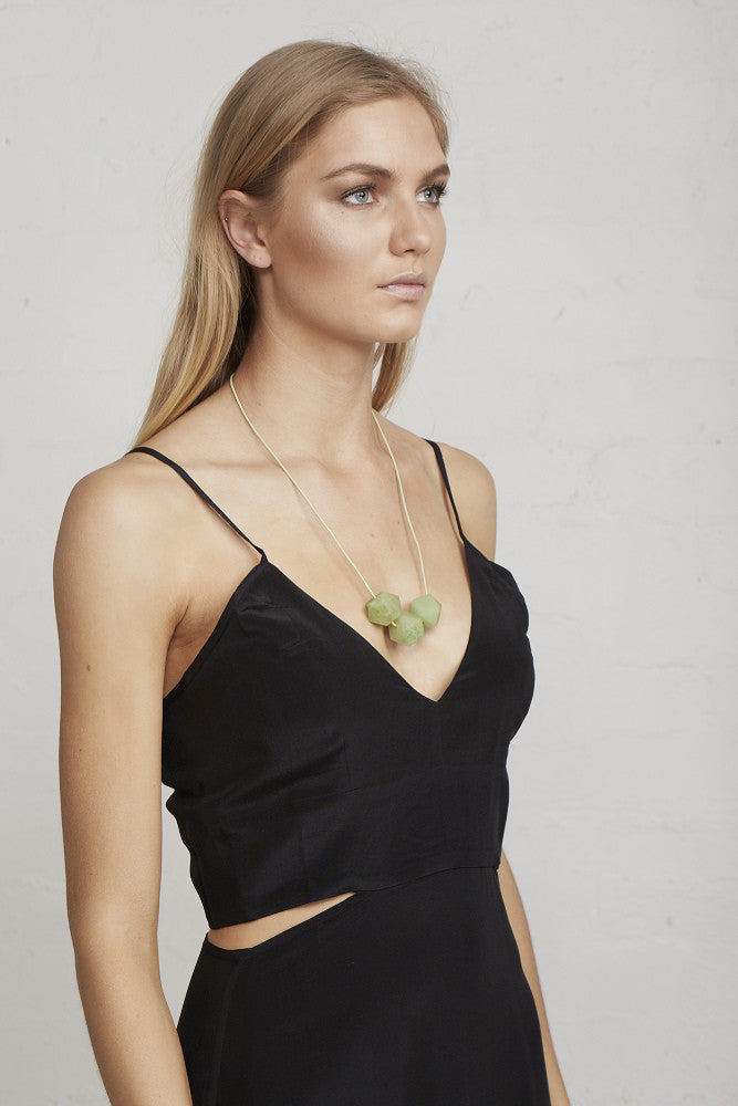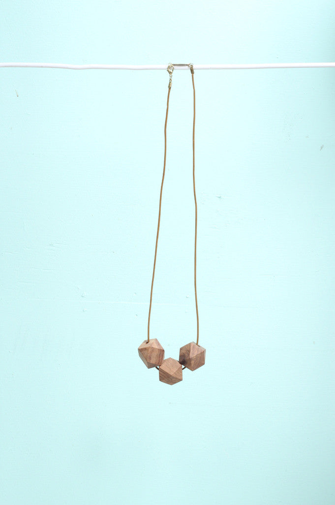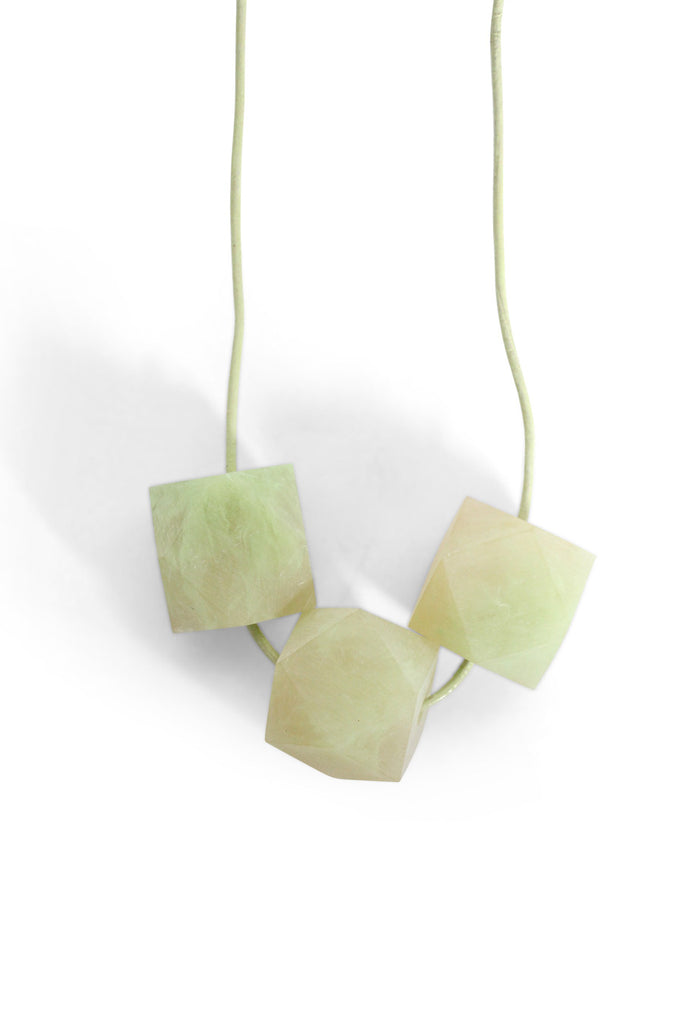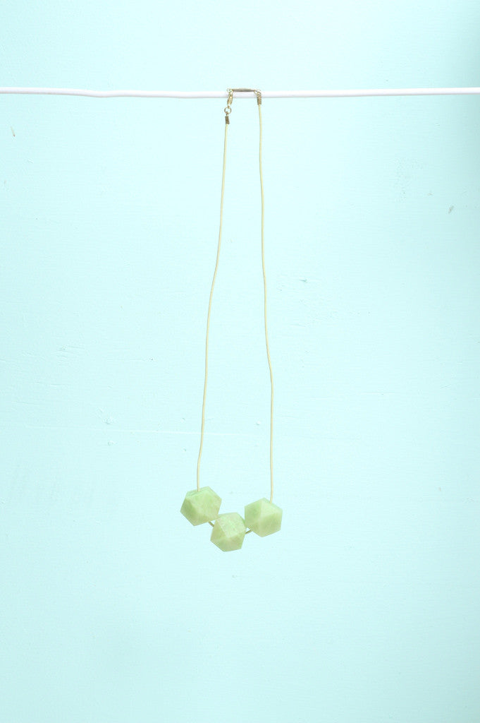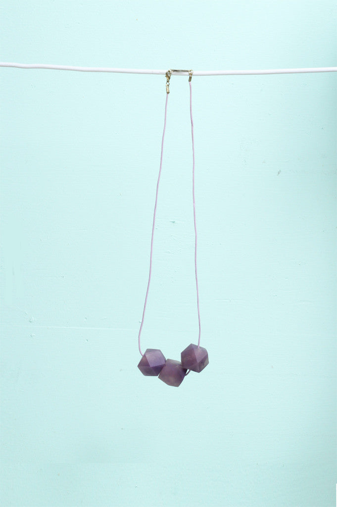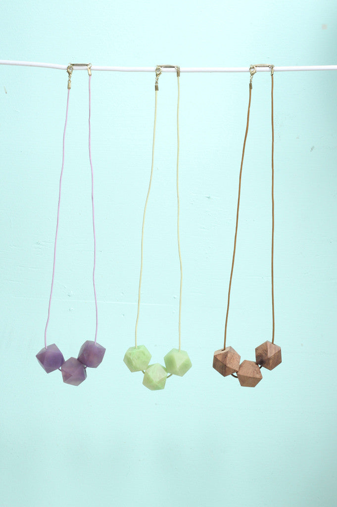 Translucent marbled resin and sustainably-grown Rosewood Marbled Gem Necklaces. Each necklace features three 'gems', on a leather cord that measures 37cm with a Limedrop oval and parrot clasp. Packaged in a Limedrop gift box available in Marbled Mint, Marbled Lavender and Rosewood.